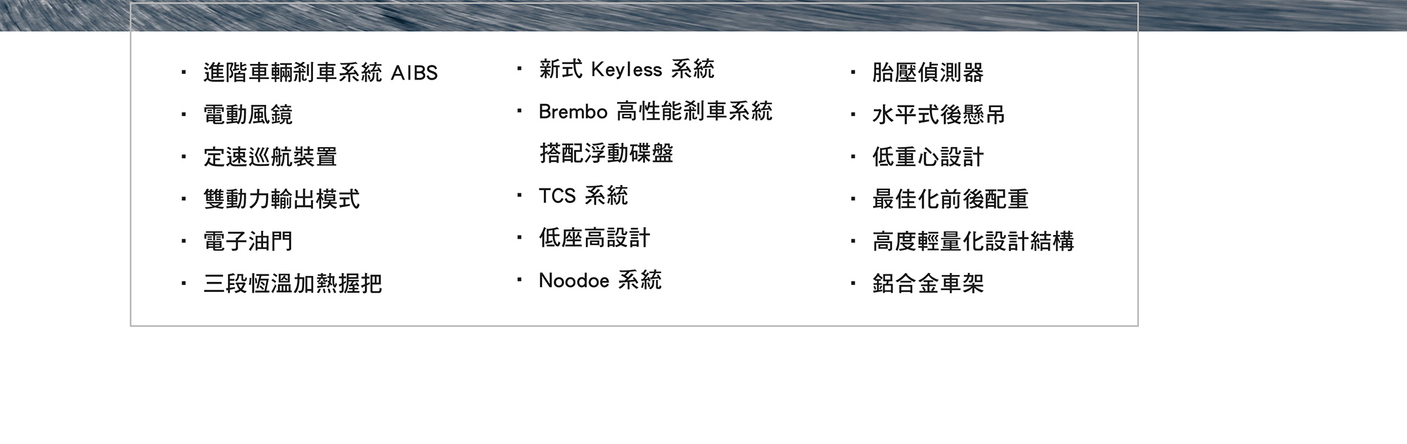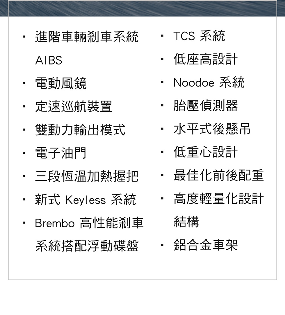 本公司保留規格、配備變更或停用的權利,因各別顯示器色差、拍攝燈光等因素,如與實車不符,以實車為準。