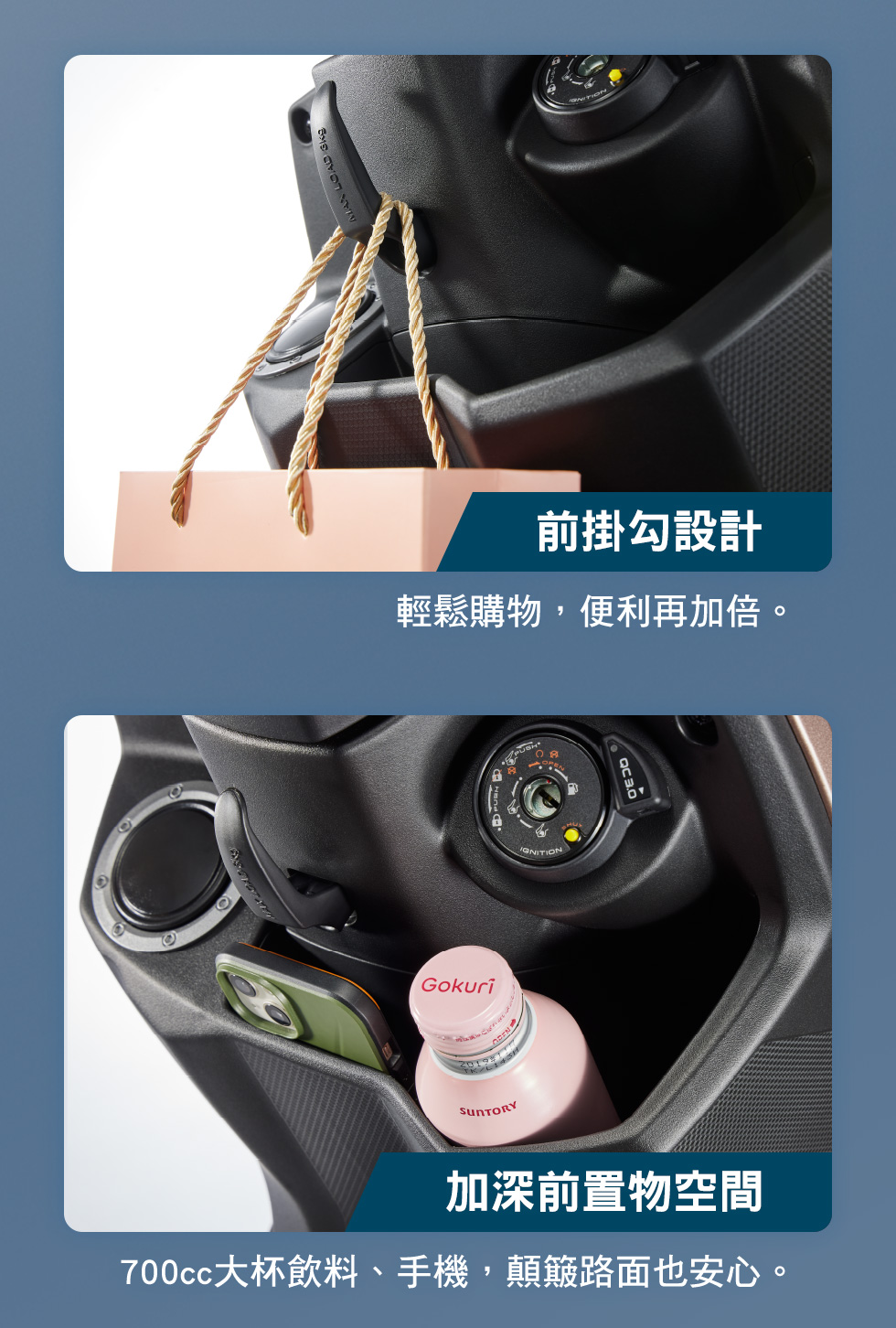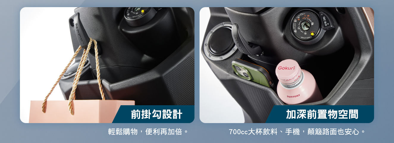 | 前置物箱空間 | 可放置 700 cc 飲料杯 | |